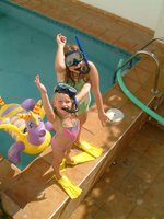 The patio area at the rear of the house is secluded offering some welcome shade from the fierce Spanish sun. It has it's own fully tiled pool 4m x 3m, a large brick built BBQ, a marble table with 4 sunloungers with wooden side table. There are also 2 outside lights for those balmy nights around the Barbie!!!